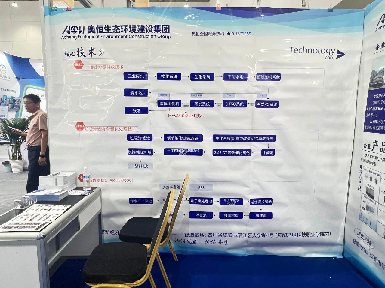 展会现场,奥恒环境重点展示了工业废水零排放、垃圾渗滤液全量化处理和市政提标CEAR工艺三大核心技术和SME-DT高效催化氧化设备、蒸发器系列(MVR/多效/聚光辅热/低温热泵蒸发器/低温热泵结晶器/低温蒸汽结晶器)、DTRO膜系列、液体固化机、矾花视境智能加药系统以及装配式污水处理设备等六大核心产品,在展会中受到广泛关注。